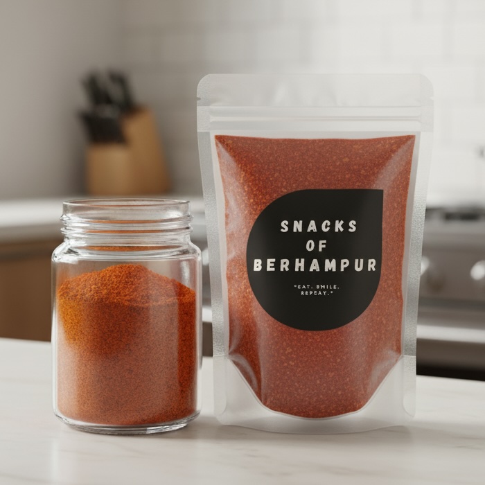Chilli powder online from Snacks of Berhampur is sourced from trusted manufacturers in Berhampur, Odisha. We carefully select and pack red chilli powder to retain its natural colour, aroma, and heat. It adds the right spice level to everyday Indian and Odia dishes.