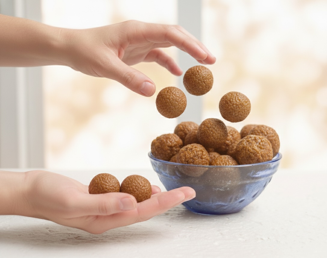 Enjoy the goodness of Coconut and Jaggery in every bite — a guilt-free, homemade sweet ball rich in flavor, energy, and tradition.