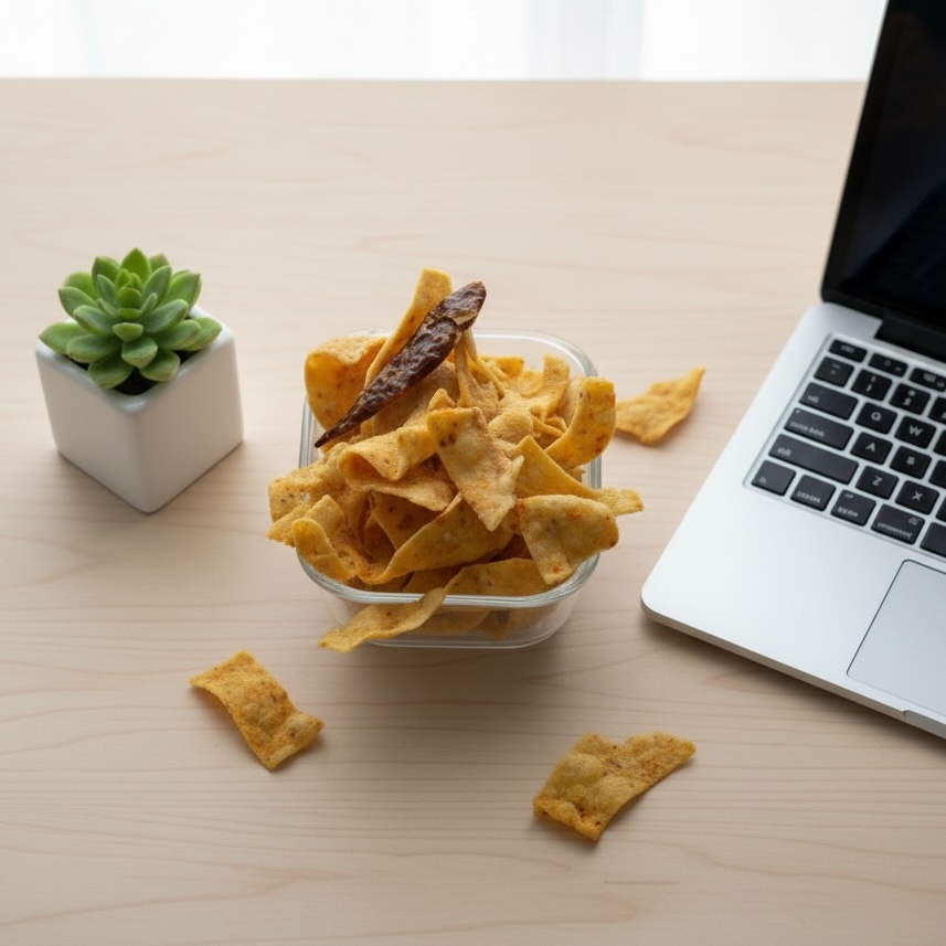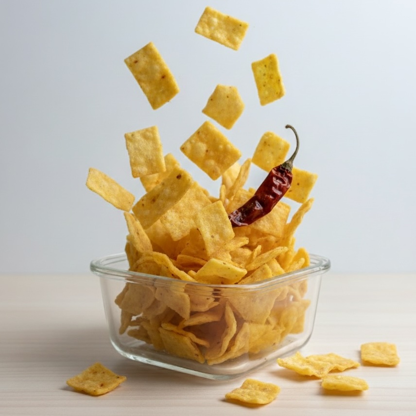 The wide ribbon form allows even frying and gives the snack a crisp yet airy feel. The simple seasoning enhances the natural taste of gram flour, making it enjoyable without heaviness and suitable for all age groups.