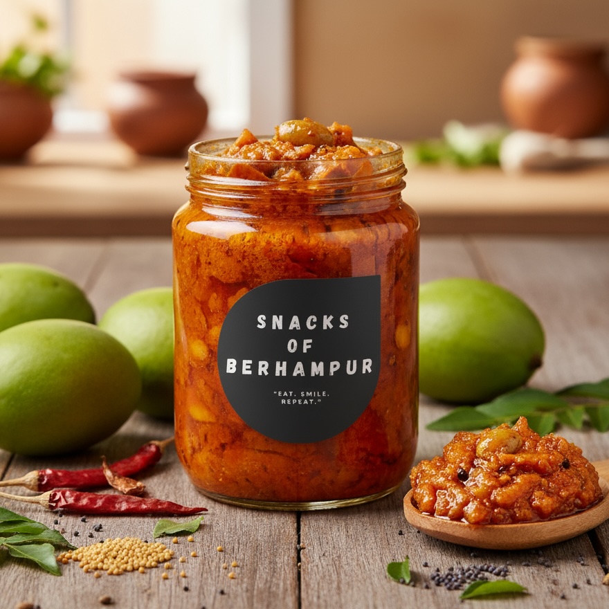 Our vendors follow hygienic preparation and packing practices to maintain freshness and quality. Snacks of Berhampur carefully sources and delivers this spicy mango pickle so you enjoy authentic taste and consistent quality in every pack.