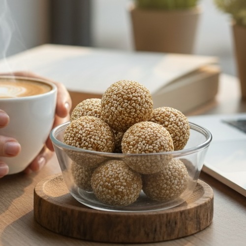 Till Laddu, also known as sesame laddu, is a traditional Indian sweet made with roasted sesame seeds and pure jaggery/sugar. Rich in calcium, iron, and natural energy, it’s a perfect healthy snack for winter and festive seasons.