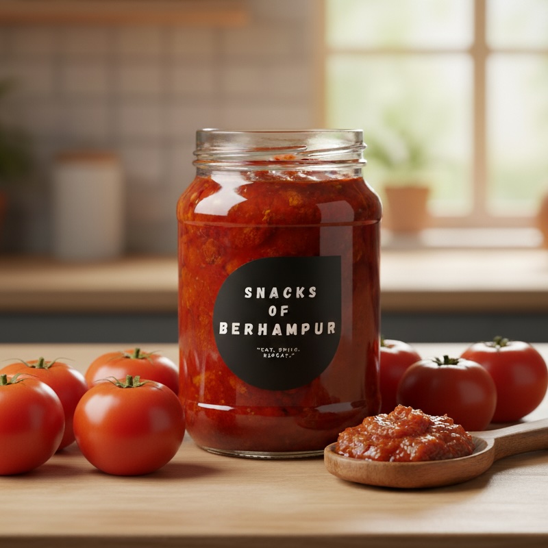 You can enjoy tomato pickle with rice, dal, curd rice, roti or paratha. It suits daily meals and traditional food platters. Our vendors follow hygienic preparation and packing practices. Snacks of Berhampur carefully sources and delivers this pickle to ensure freshness, quality and consistent taste.