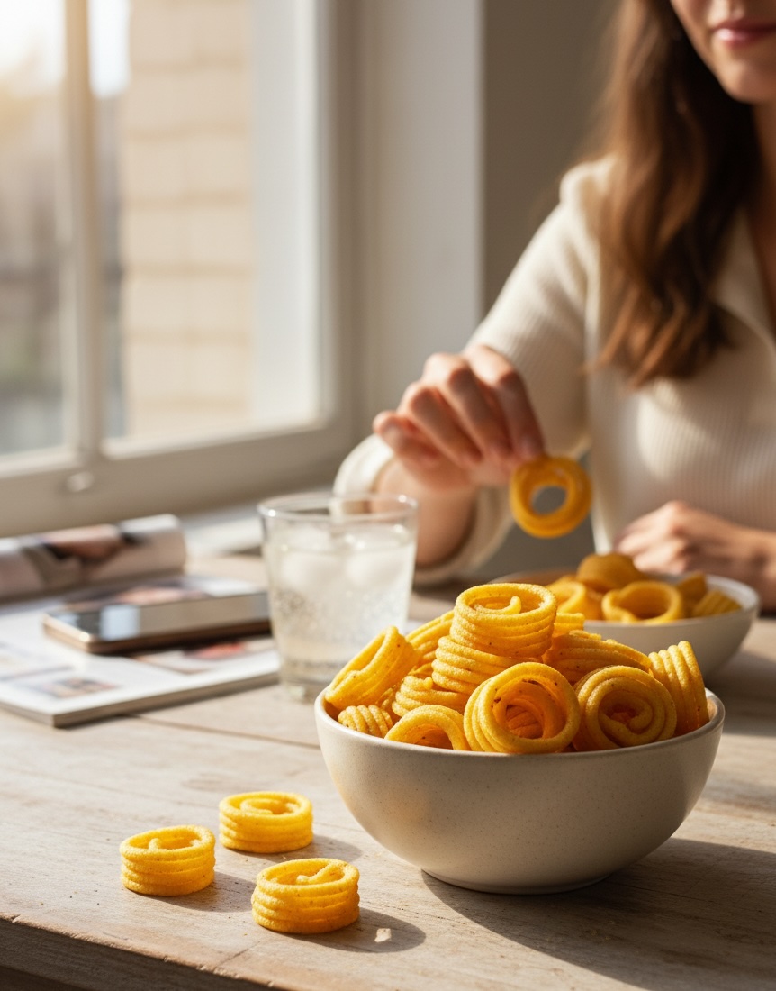 Each ring fries evenly to achieve a light crunch. The tangy seasoning adds a refreshing twist, making this snack enjoyable without feeling heavy. Its vibrant flavour appeals to both kids and adults.