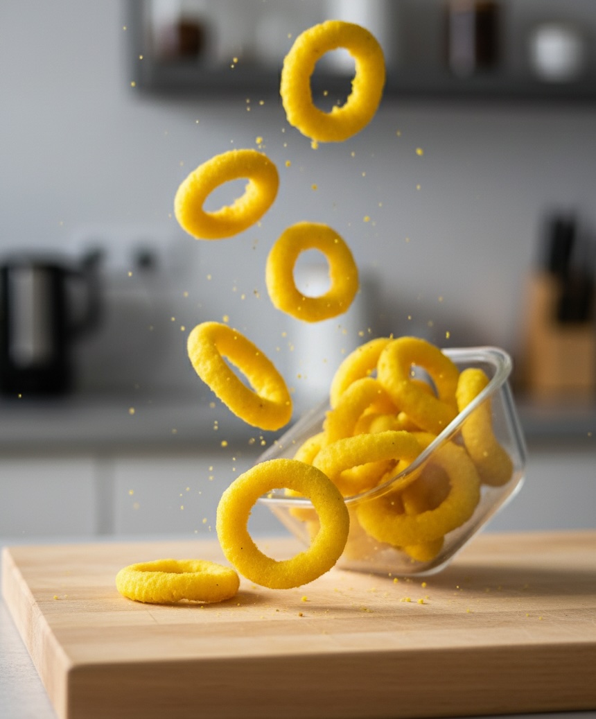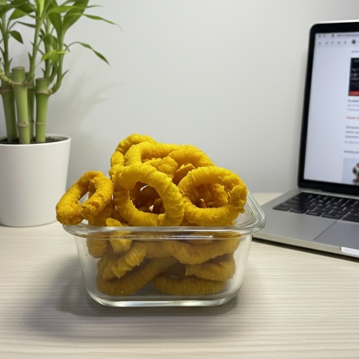 Each ring fries evenly to achieve a light crunch and balanced seasoning. The simple spice blend makes this snack enjoyable without feeling heavy, making it suitable for all age groups.